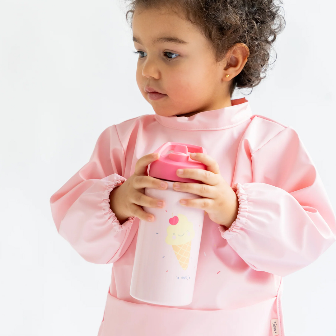 The Saro bib with sleeves and pocket provides excellent protection for your little one during mealtime or creative activities, such as drawing, playing with modeling clay, or other fun projects.