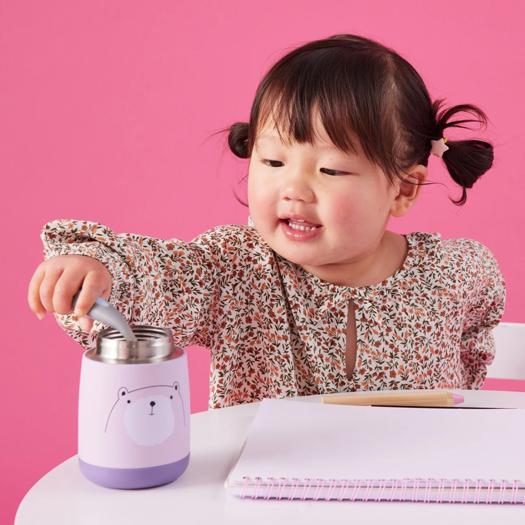 Paprastas termosiuko pripildymas ir sandarus dizainas padeda išlaikyti maistą šiltą iki 4 valandų arba vėsų iki 6 valandų. 210 ml talpa puikiai tinka tiek mažiems, tiek didesniems vaikams. Unikali stabdymo funkcija neleidžia tėvams per stipriai užsukti dangtelį ir taip skatinamas savarankiškumą, nes paaugęs vaikas gali savarankiškai atsisukti. Taip pat puikiai tinka užkandžiams laikyti, kai mažyliai paauga.