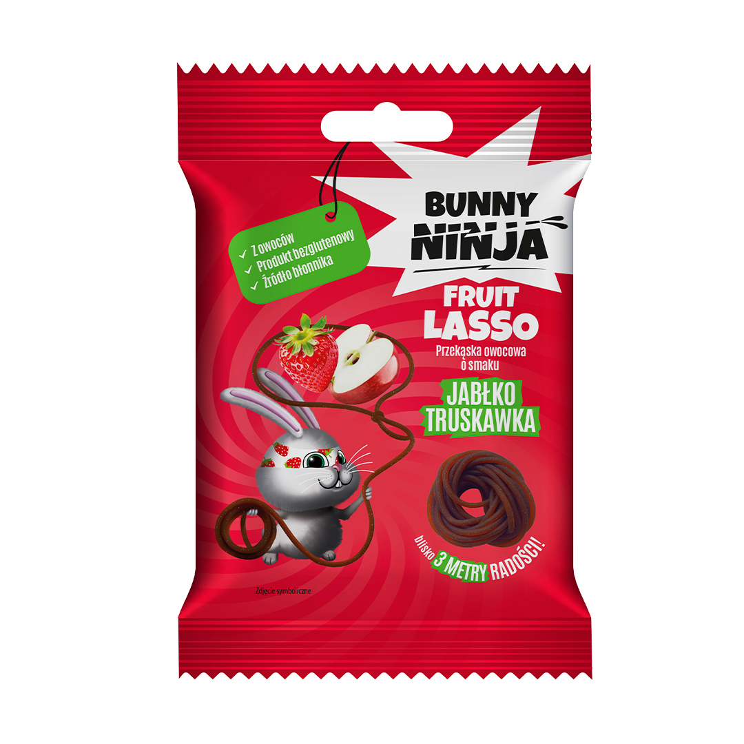 Produktas: Bunny Ninja Obuolių ir braškių skonio virvelė