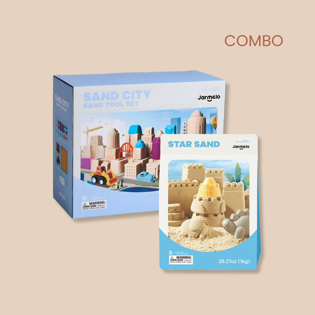 Leiskite vaikui kurti savo miestą – nuo pirmojo pastato iki viso kvartalo. Rinkinyje rasite įvairių formelių, įrankių ir priedų, skirtų kasti, spausti, pilti ir formuoti. Tai veikla, kuri natūraliai įtraukia ir skatina kurti vis naujus statinius bei žaidimo scenarijus.