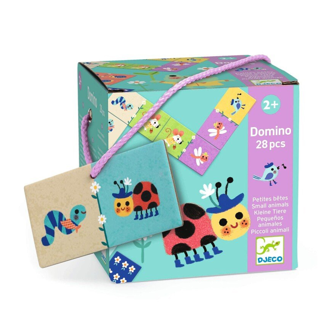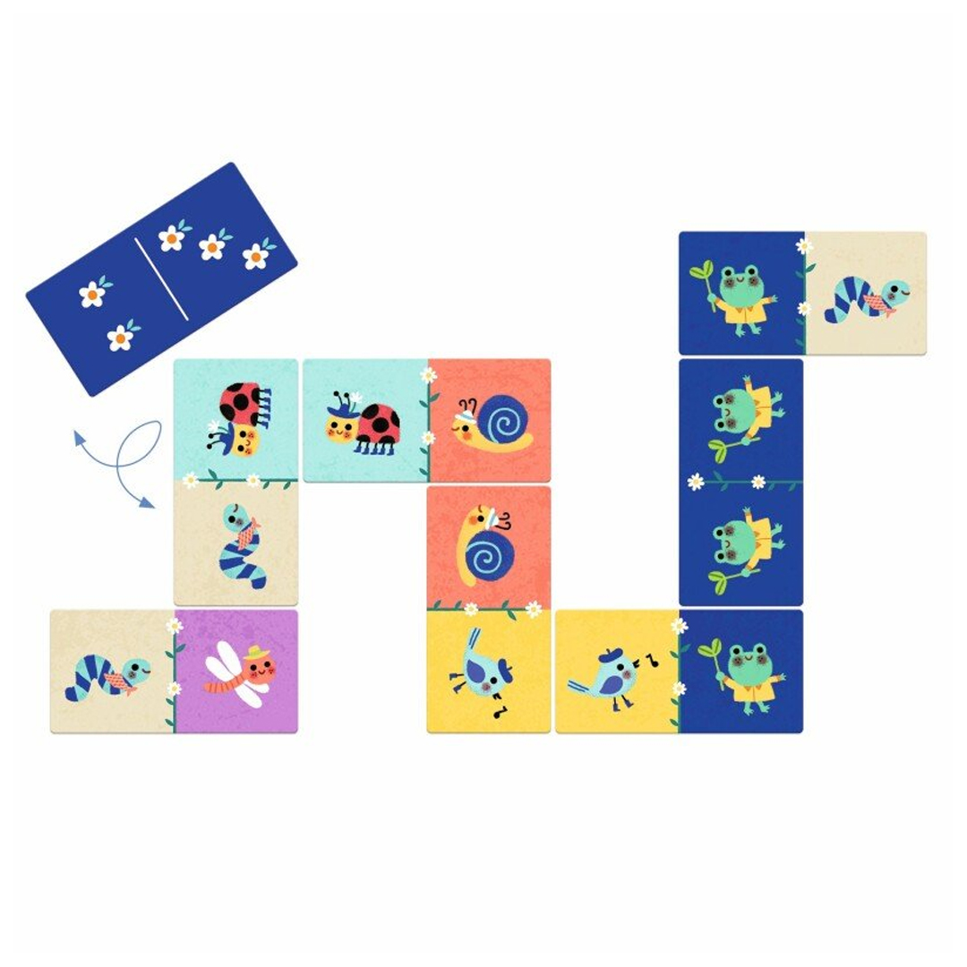 Spalvingas paveiksliukų atpažinimo ir skaičių atitikimo žaidimas. Kiekviena iš 28 domino kortų yra pagaminta iš storos kortelės, kurioje vienoje pusėje yra draugiški gyvūnai, o kitoje – spalvoti taškai. Dėlionė lavina smulkiąją motoriką, loginį mąstymą.