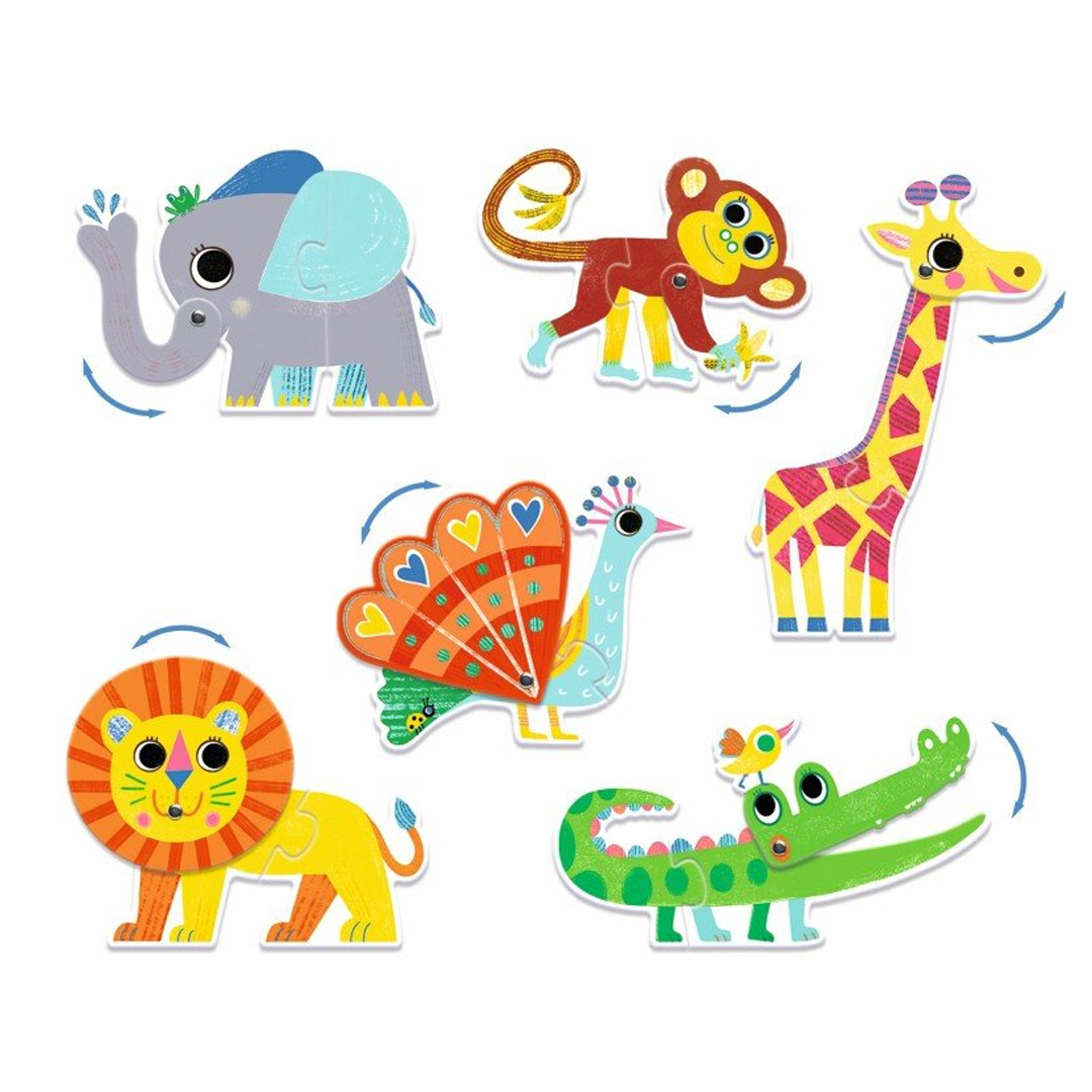 Produktas: Djeco Dviejų dalių dėlionė “Judantys gyvūnai”