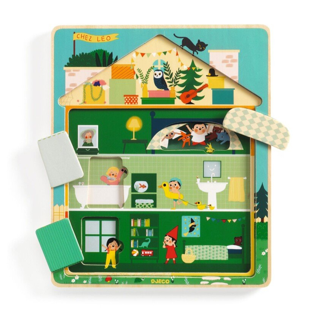 Produktas: Djeco Trijų sluoksnių medinė delionė “Namas”