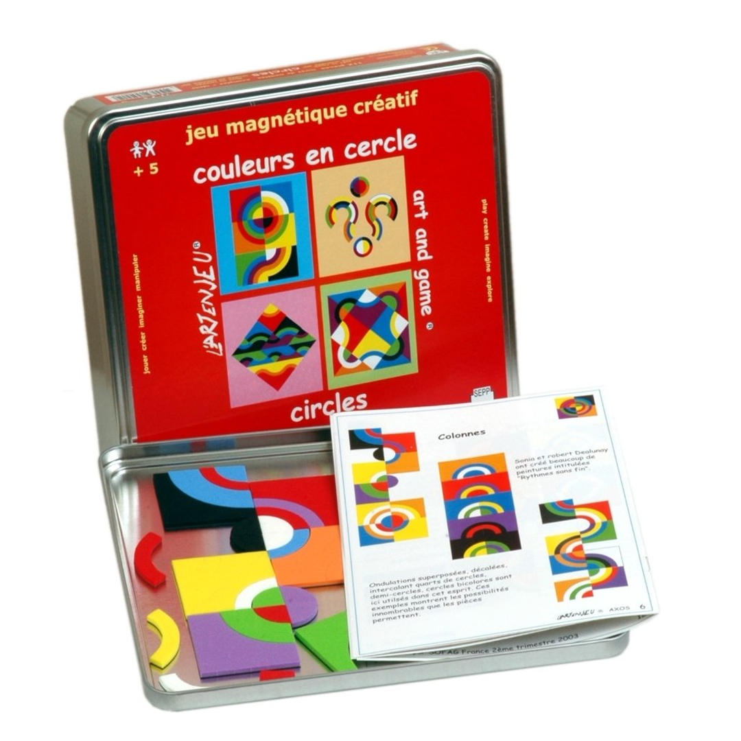 Šis Iotobo magnetinių dėlionių rinkinys leidžia vaikams kurti spalvingas, dinamiškas ir harmoningas kompozicijas, įkvėptas XX a. pradžios tapytojų Roberto ir Sonios Delaunay stiliaus. Čia forma susitinka su spalva, o žaidimas virsta menu.