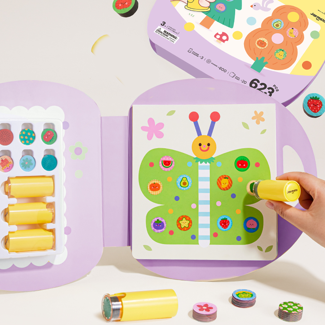 Į rinkinį įeina: 3 štampavimo įrankai, 600 specialių lipdukų, 20 veiklos lapų.