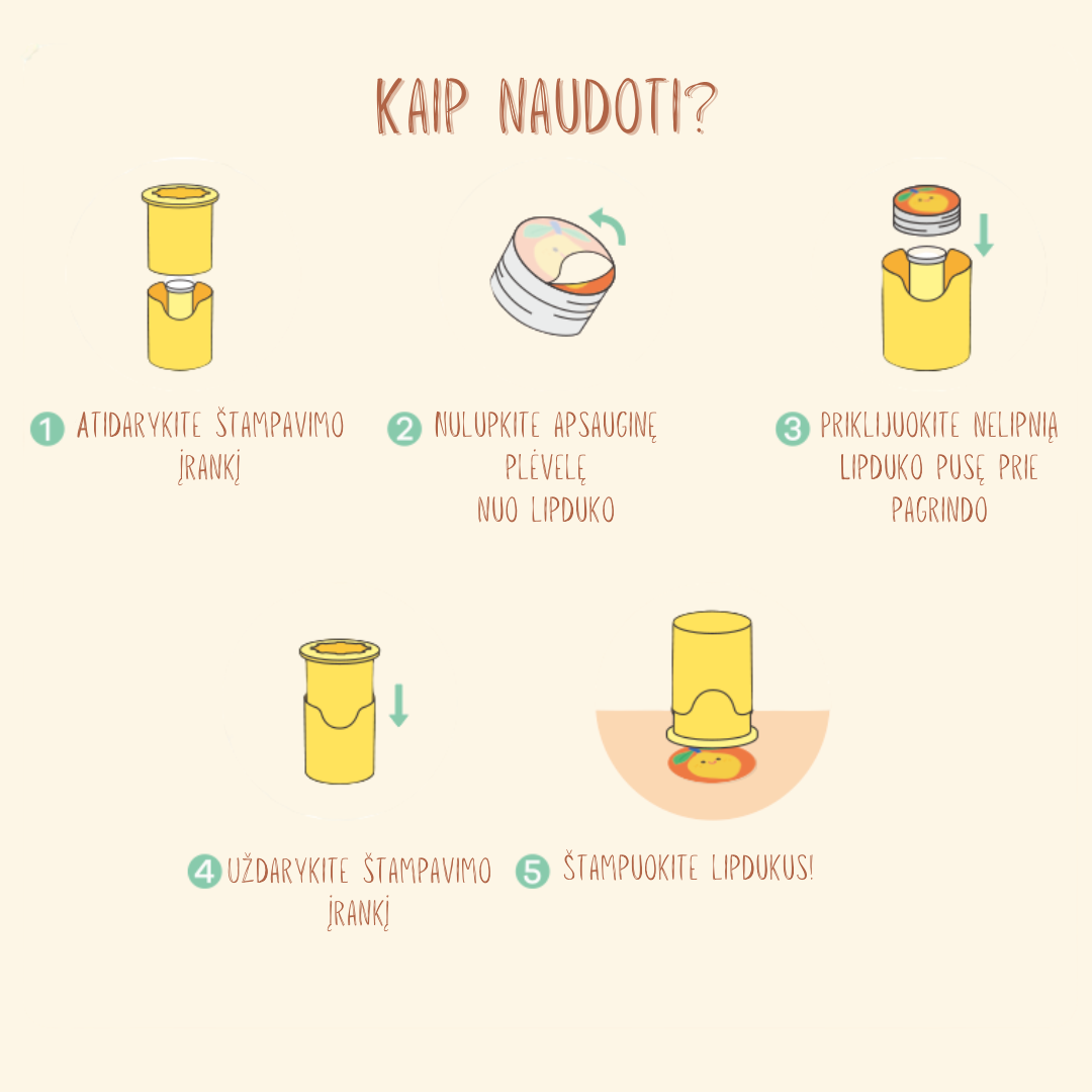 5. Lengvai paspauskite žemyn štampavimo įrankį, taip užklijuosite lipduką.