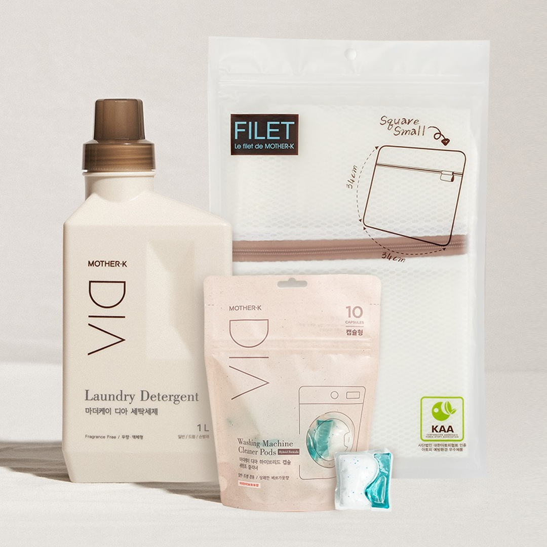 Produktas: Mother-K DIA audinių skalbiklis, DIA skalbimo mašinos valymo kapsulės + DOVANA Skalbimo maišelis