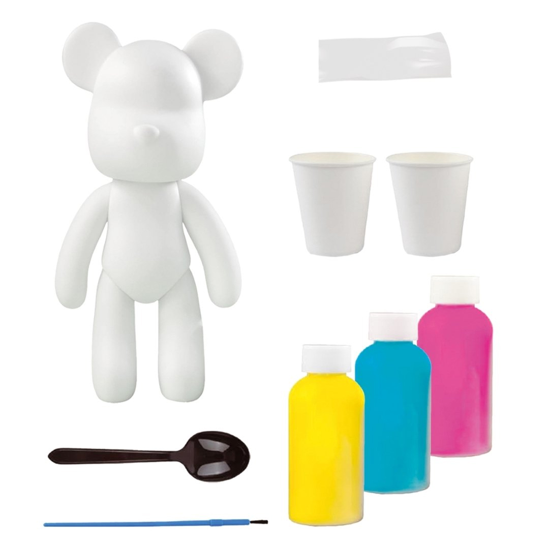 Į rinkinį įeina: Šaukštas, Teptukas, 23 cm dydžio meškiukas, Popierinė lėkštė, Popierinis puodelis, Dažai (3 spalvų buteliukai)
